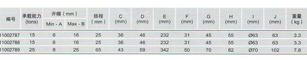 液壓擴張器參數: